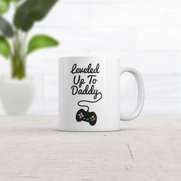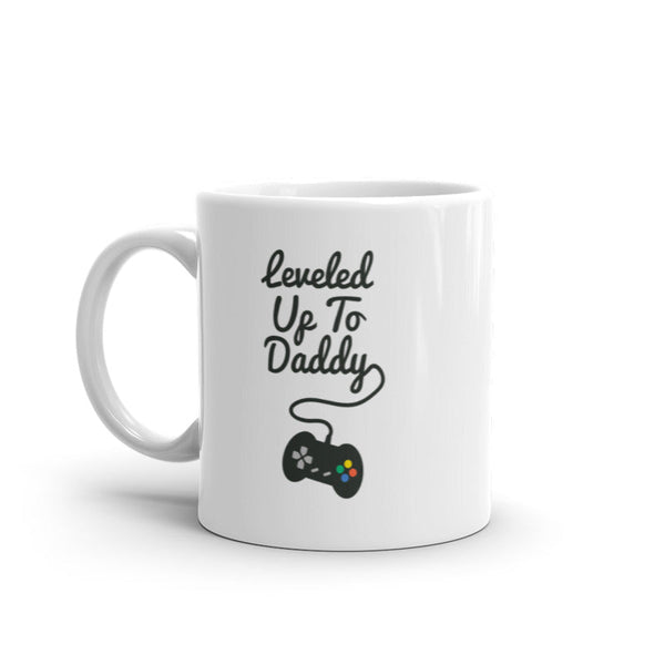 Funny Father's Day Mug - 'Leveled Up To Daddy' Video Game Controller Design - 11oz Novelty Coffee Cup