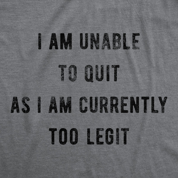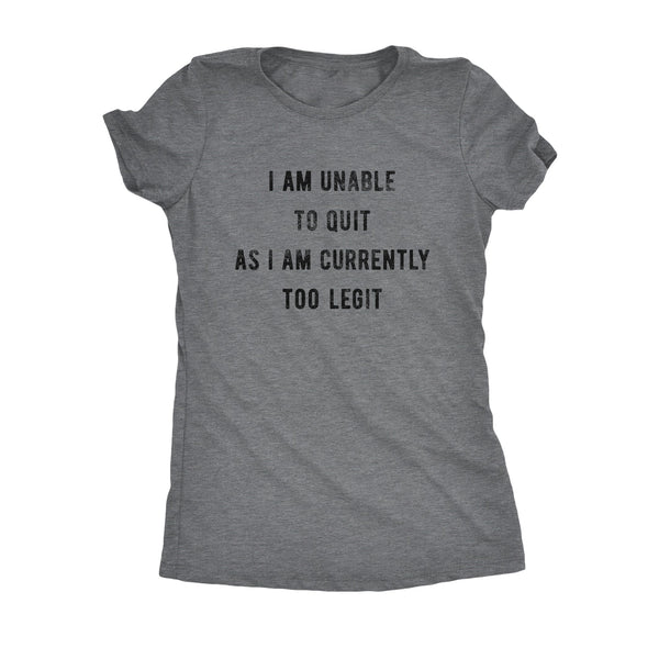 I Am Unable To Quit As I Am Currently Too Legit Womens T Shirt